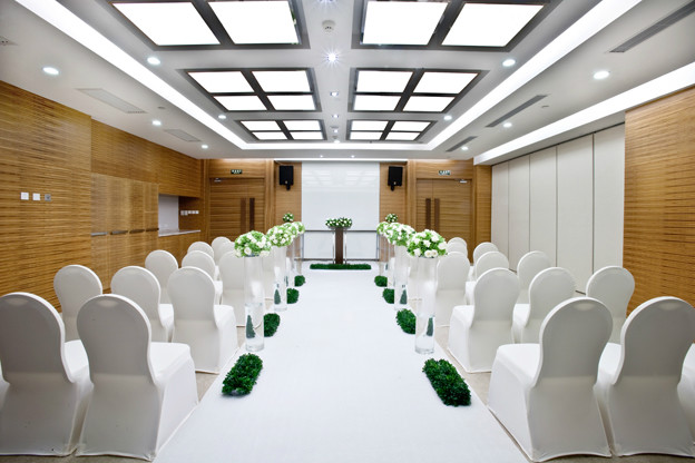 宴会大厅——位于酒店3层的宴会厅,拥有难得的自然采光,先进的设备,150平米的宴会前厅可满足多种需求